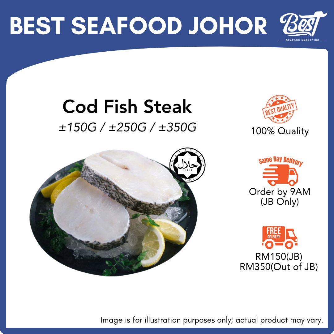 As a Johor Bahru supplier of premium seafood, we are proud to offer our customers fresh and delicious Cod Fish Steak. Our Cod Fish Steak is carefully selected and cut to provide the best quality and flavor. Order now to enjoy the tender and juicy texture of our Cod Fish Steak, which is perfect for grilling, frying, or baking. From a trusted local supplier, we guarantee satisfaction with every bite.