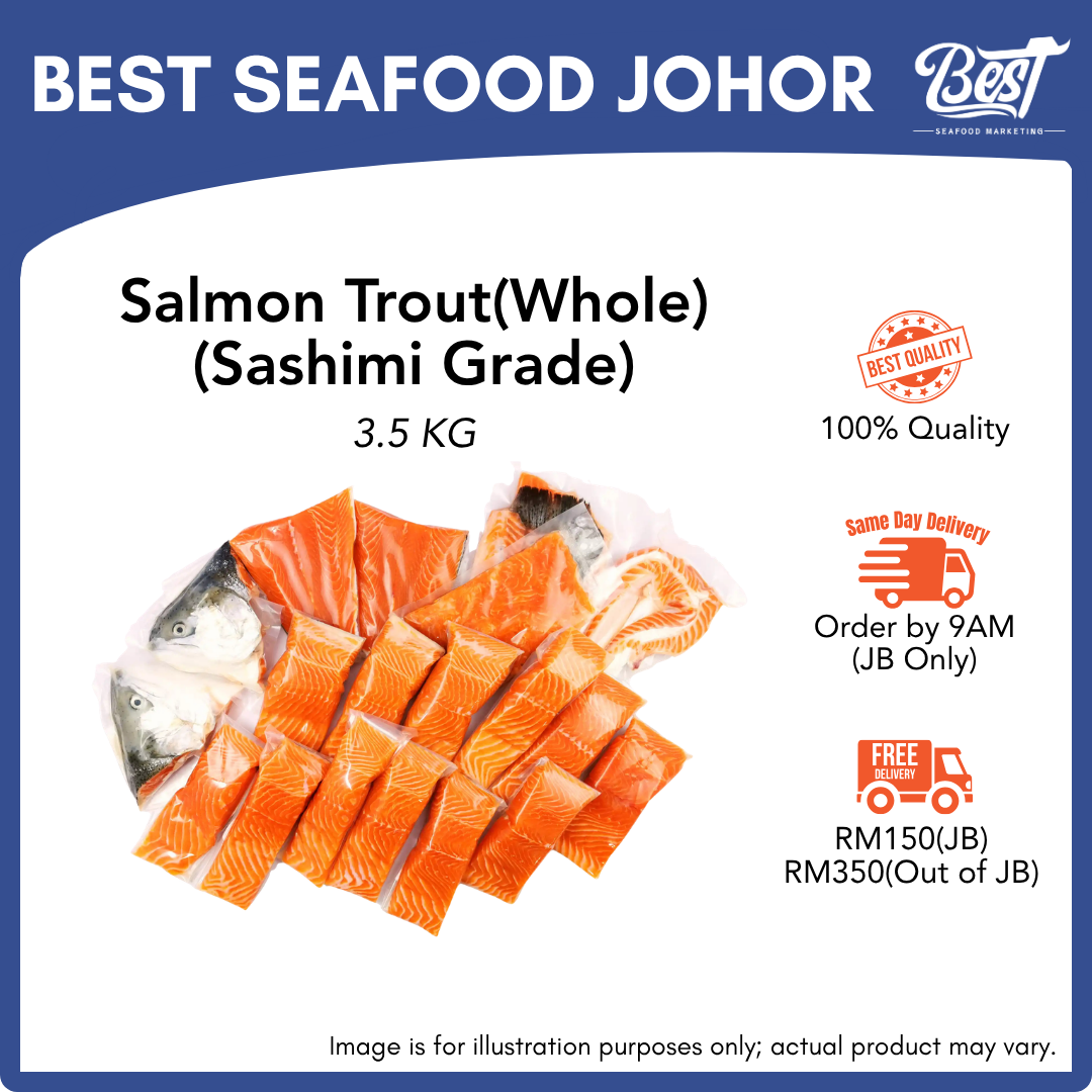 As a supplier of fresh seafood in Johor Bahru, we offer high-quality salmon trout. Order now to taste the delicate and rich flavor of our salmon trout sourced from trusted local suppliers. Our salmon trout is perfect for grilling, baking, or even as sashimi. Enjoy a healthy and delicious meal with our fresh salmon trout.